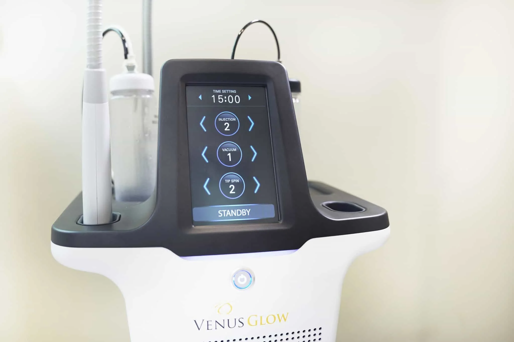 Este tratamiento se realiza con el equipo Venus Glow,cuenta con una punta suave de silicón capaz de succionar y girar simultáneamente, extrayendo toxinas, células muertas y restos de maquillaje sin causar irritación.